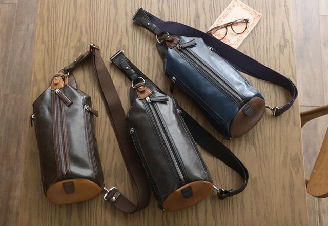 すっきりタテ型 整ったデザイン 大人の帆布ボディバッグ