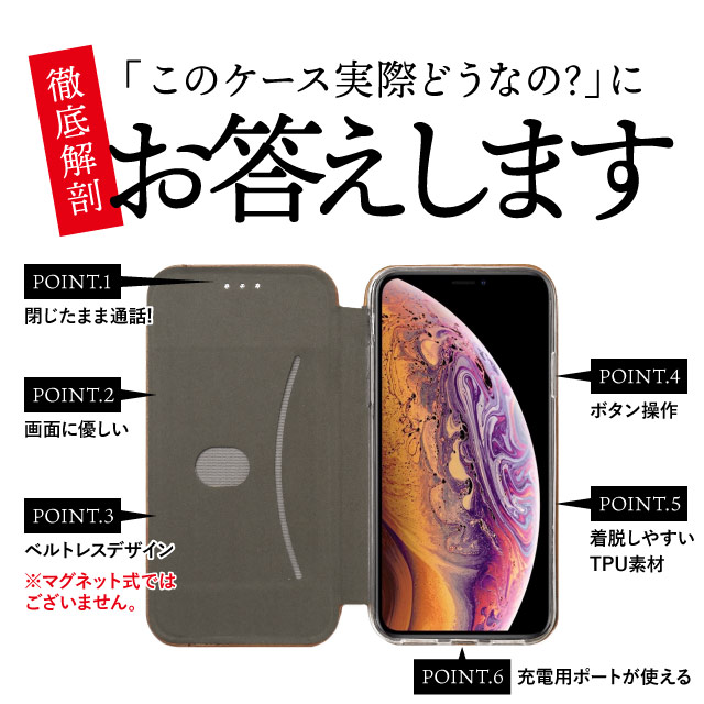 - 留め具のない手帳型を探していて購入しましたが、留め具がなくてもピタッとなっているのでケースが開いてくることもなく良かったです。