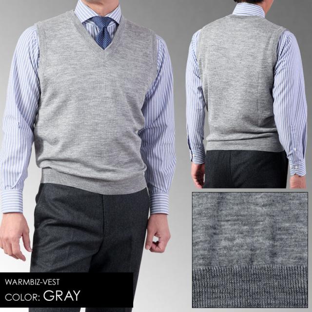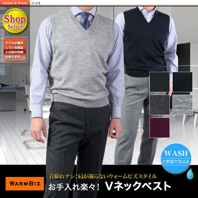 ウォームビズ ウールブレンド Vネックベスト 無地 オフスタイル メンズ ニット SY-13300/SKW82-03400CG 【クロネコゆうパケット】