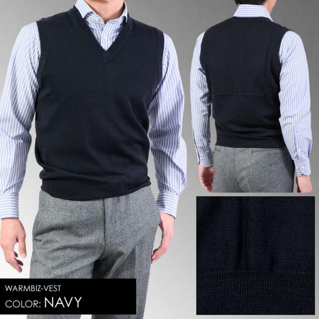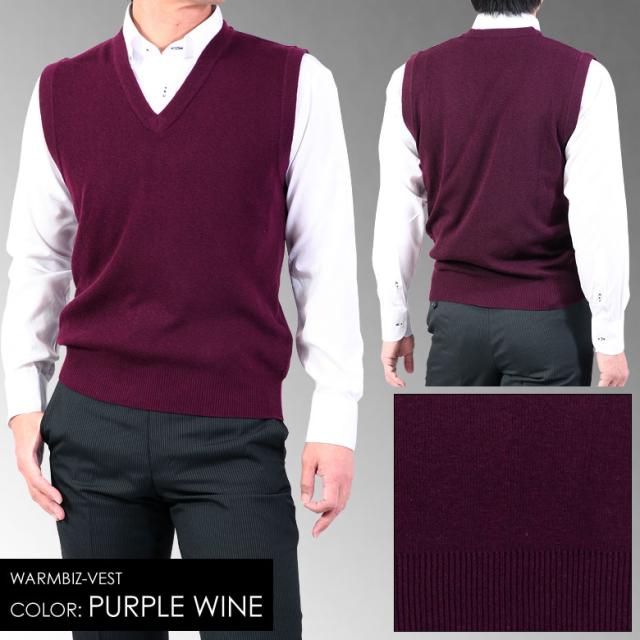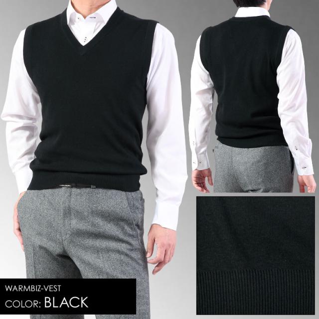 ニット ベスト ウォームビズ M L LL メンズファッション ブラック 黒 ネイビー 濃紺 グレー チャコール パープル 紫 紳士服 シンプル