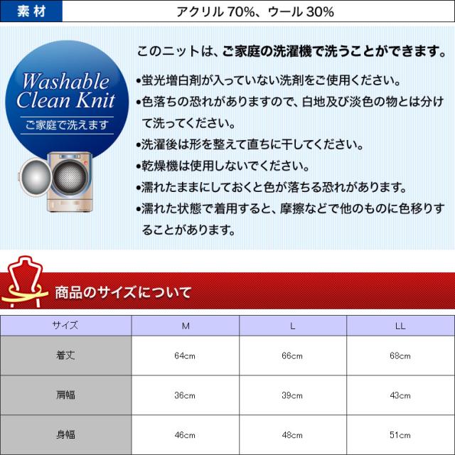 【素材】アクリル70%、ウール30%(ご家庭で洗濯可能なウォッシャブルタイプ)