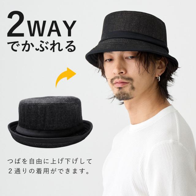 ポークパイハット 61cm 58cm デニム調 帽子 メール便は送料無料 深めポークパイハット 2サイズ展開 全2色 hat-1348 バケットハット メンズ 春夏 秋冬 UV 紫外線対策 レディース 深い 無地 ギフト プレゼント おしゃれ 男女兼用 カジュアル 大人 普段使い 黒 紺