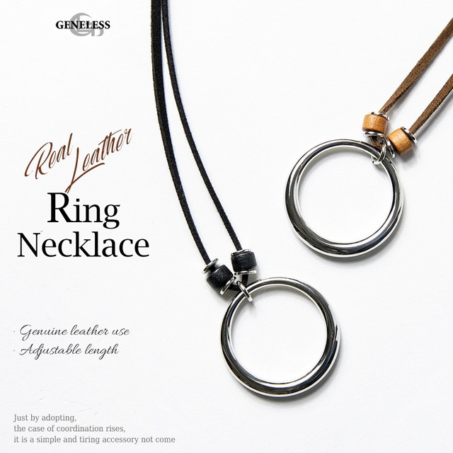 メンズ アクセサリー ネックレス リング 皮ひも リングモチーフ 紐 ラージリング ギフト プレゼント none