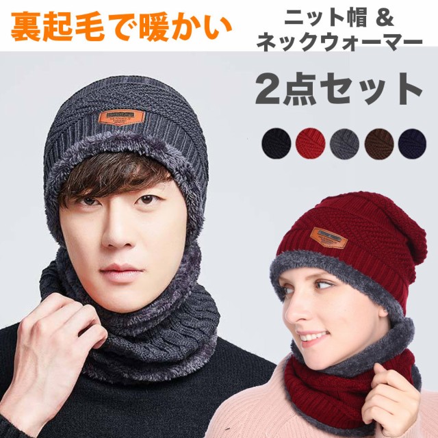 fa 裏起毛 2点セット ニット帽 ネックウォーマー #A52c1 メンズ 防寒 マフラー スヌード レディース スノボ スキー アウトドア M便