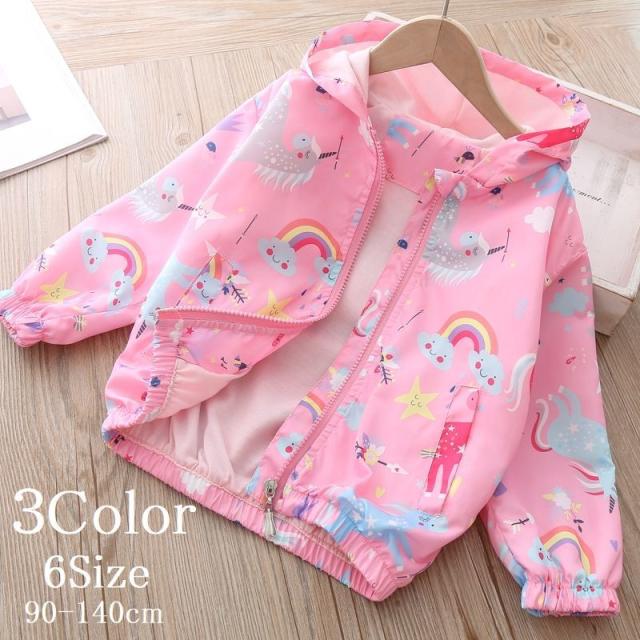 ウインドブレーカー 子供用 長袖 キッズ 女の子 アウター パーカー かわいい フード付き お出かけ ユニコーン ピンク ブルー