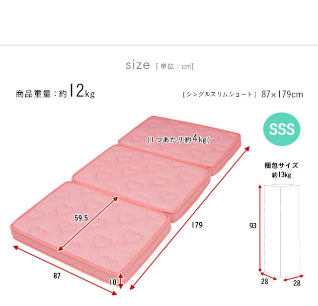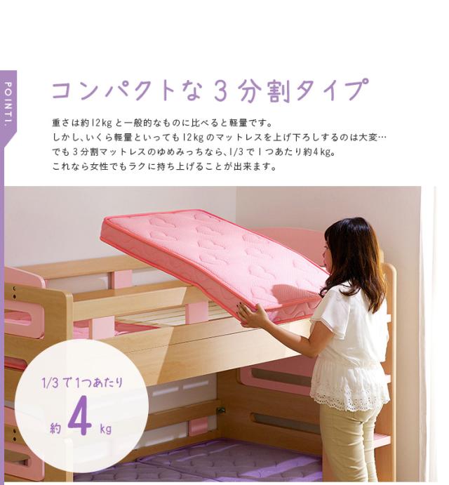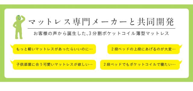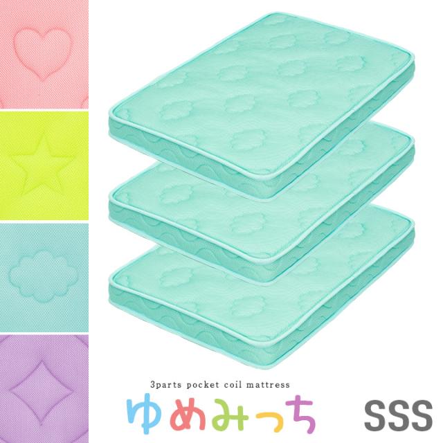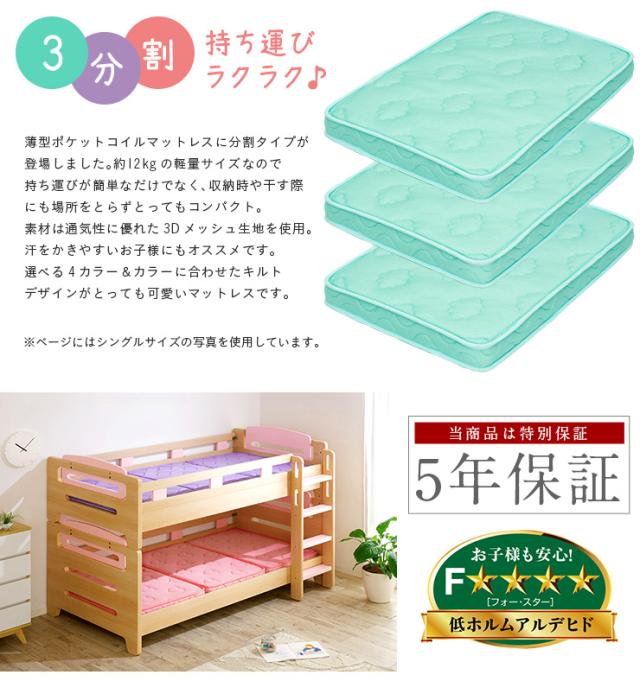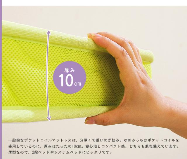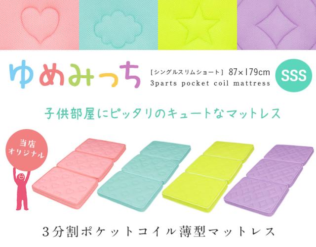 【5年保証】マット マットレス 3分割 シングルスリムショート ポケットコイルマットレス 薄型マットレス 圧縮マットレス 二段ベッド用 三段ベッド用 システムベッド用 SSS ゆめみっち 4色対応
