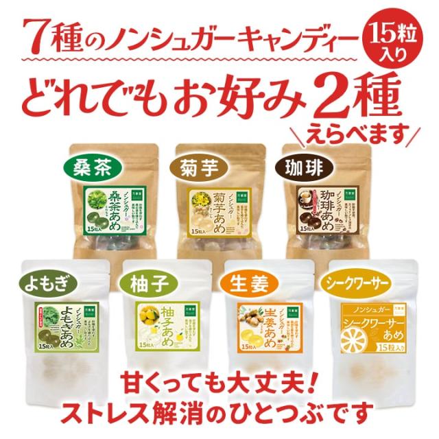 シュガーレス 飴 送料無料 キャンディー 15粒 7種の中から2種選んで下さい。ノンシュガー のど飴 のどあめ 砂糖不使用