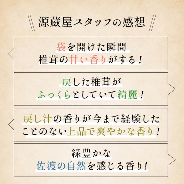 - リピート致しました。戻すのも、楽。きれいな、品質良い椎茸。汁物やシチューにも、使えました。スーパーの干し椎茸は、買えない。又、買いたい。
