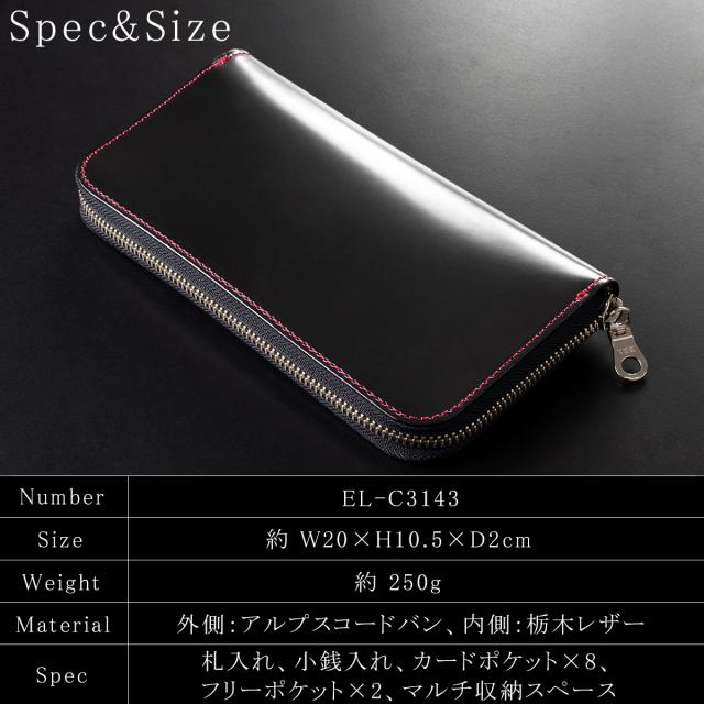 財布 メンズ 長財布 ラウンドファスナー 大容量 コードバン 栃木レザー 日本製 EL-DIABLO エルディアブロ 【EL-C3143】 ブランド 人気