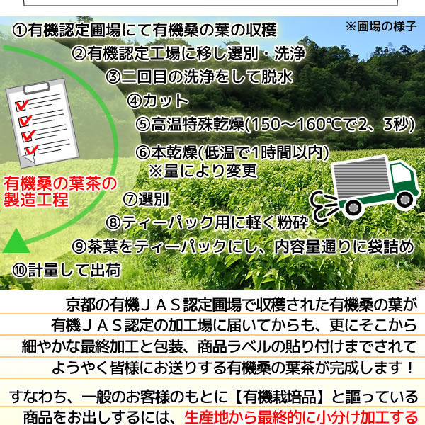 | 原材料名 有機桑葉【生産:京都府 最終包装地:福岡】 |
