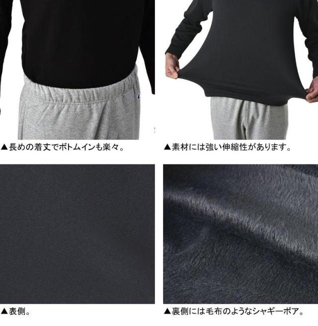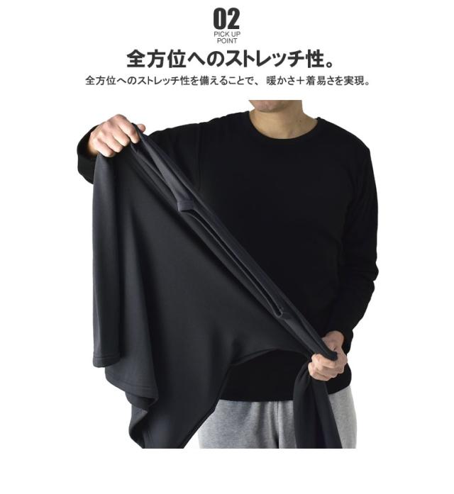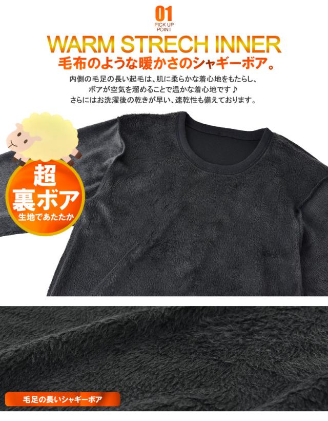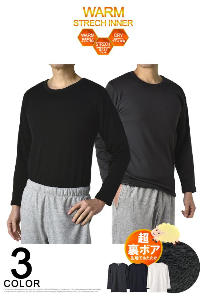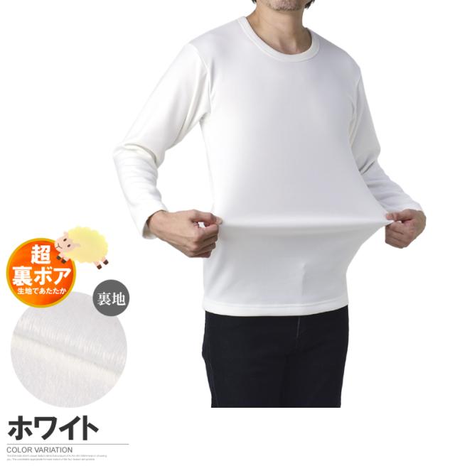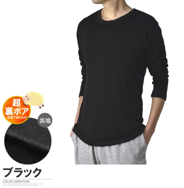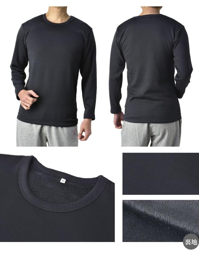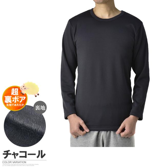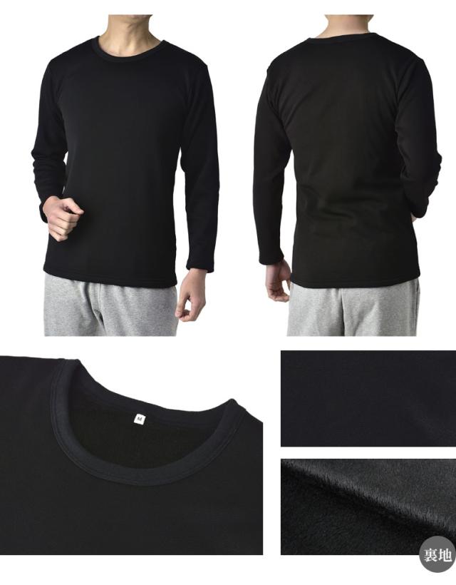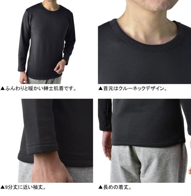 毛布のような肌着 メンズ インナー 裏ボア 超厚手 裏起毛 Tシャツ クルーネック 長袖 9分袖 アンダーウェア 下着 【E3V】【パケ1】【A】