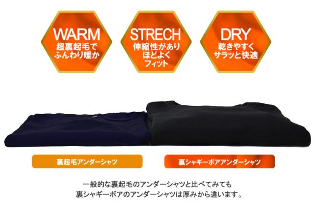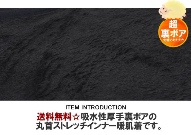 送料無料☆吸水性厚手裏ボアの丸首ストレッチインナー暖肌着です。