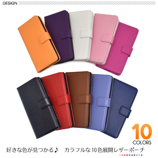 カラフルな10色展開のカラーレザー手帳型ケース。