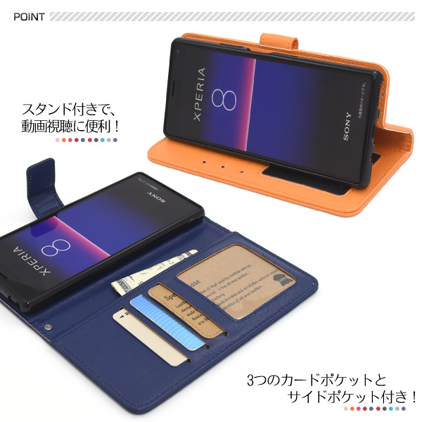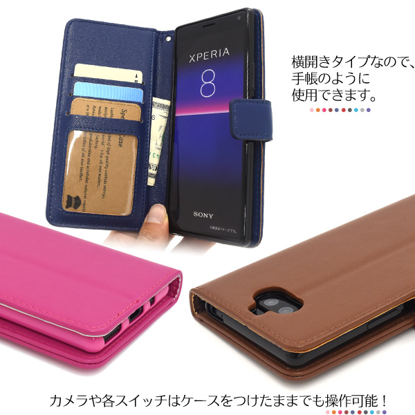 スマートフォンケース Xperia8 SOV42 au Y!mobile UQmobile用 手帳型 カラーレザーケース 保護カバー シンプル 無地 装着簡単 オシャレ カジュアル 携帯ケース お洒落 おしゃれ スタンダード スマホカバー auスマホ