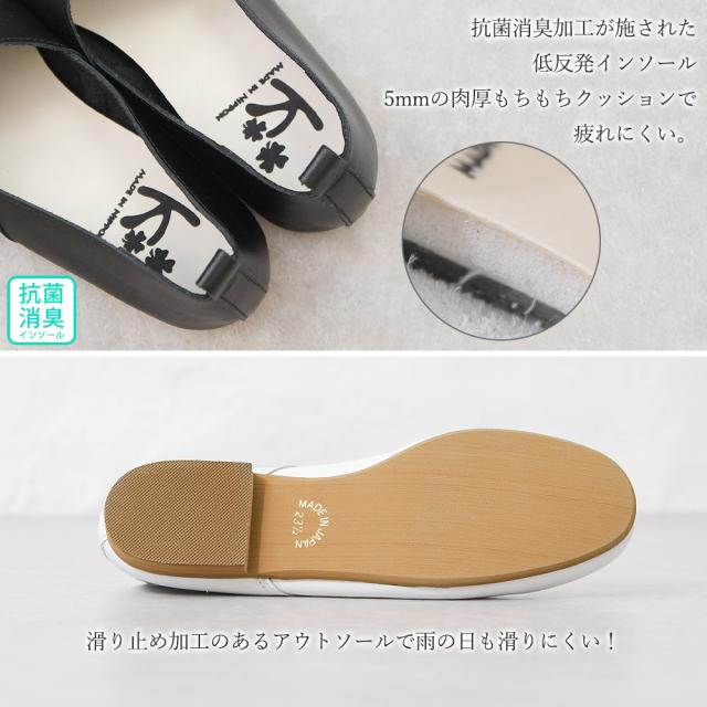 本革 フラットシューズ レディース パンプス スクエアトゥ 痛くない 黒 歩きやすい ローヒール 大きいサイズ ぺたんこ 日本製 靴 走れる 春新作