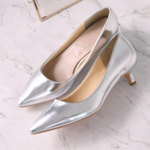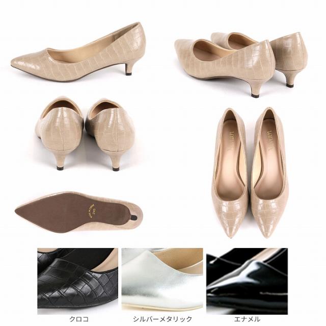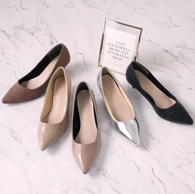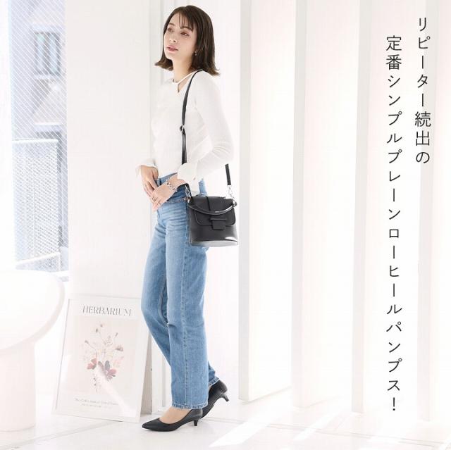 シンプルプレーンローヒールポインテッドトゥパンプス