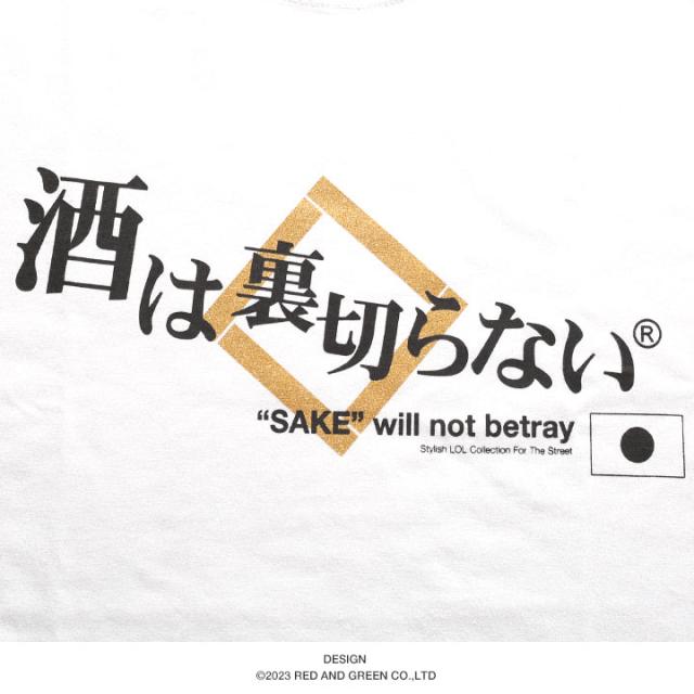 酒は裏切らない 公式 ロンT 酒 おもしろ Tシャツ 長袖 ロンティ トップス 春秋冬用 黒 白 大きいサイズ 和柄 お酒 ロゴ 契り 木升 ヲタ映えモード おしゃれ 金プリント 面白い 外国人 インバウンド ストリート系 服 クリスマスギフト WB-TL-LT-012