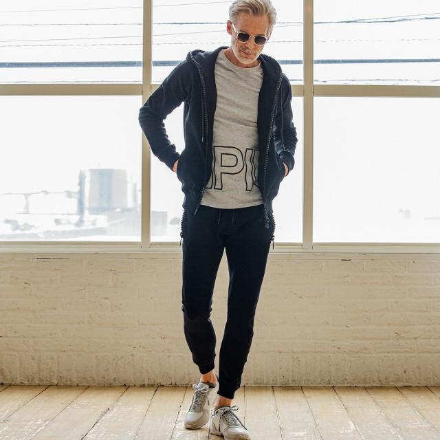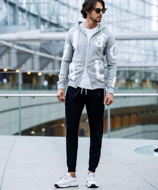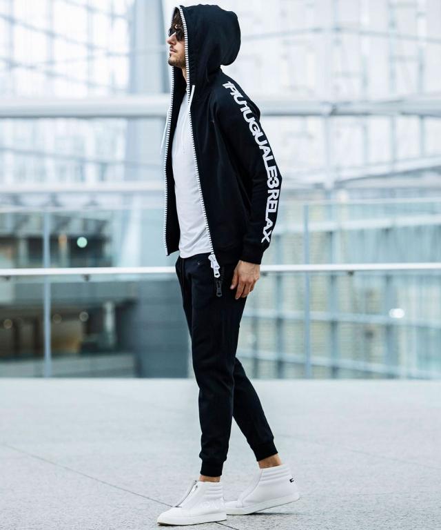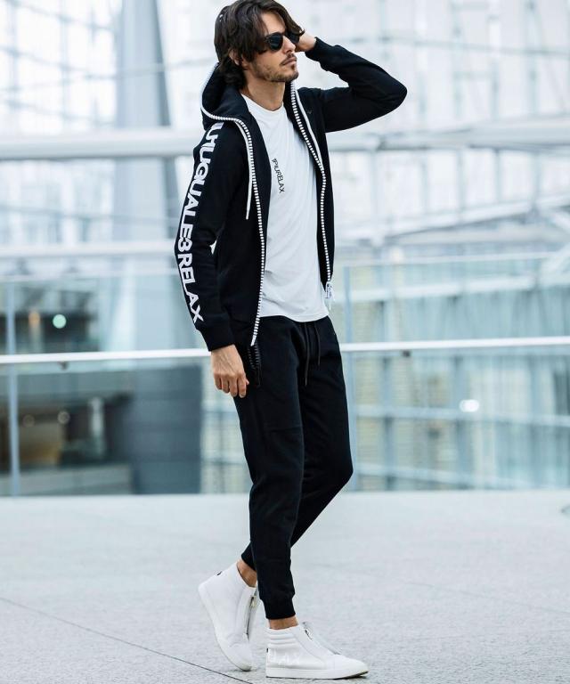 同シリーズの裏毛ビッグファスナーパーカー とのセットアップスタイルがお勧めです。