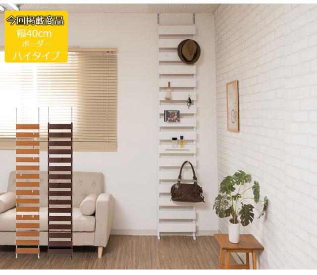 BORDER ボーダー 突っ張り立体ボーダーラック 幅40cm ハイタイプ (突っ張り 壁面収納 仕切り パーテーション ウォールシェルフ 木製)
