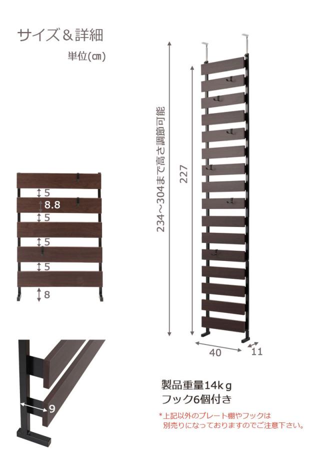 サイズ:本体:約幅40×奥行9(脚部11)×高さ234〜304cm/約14kg
