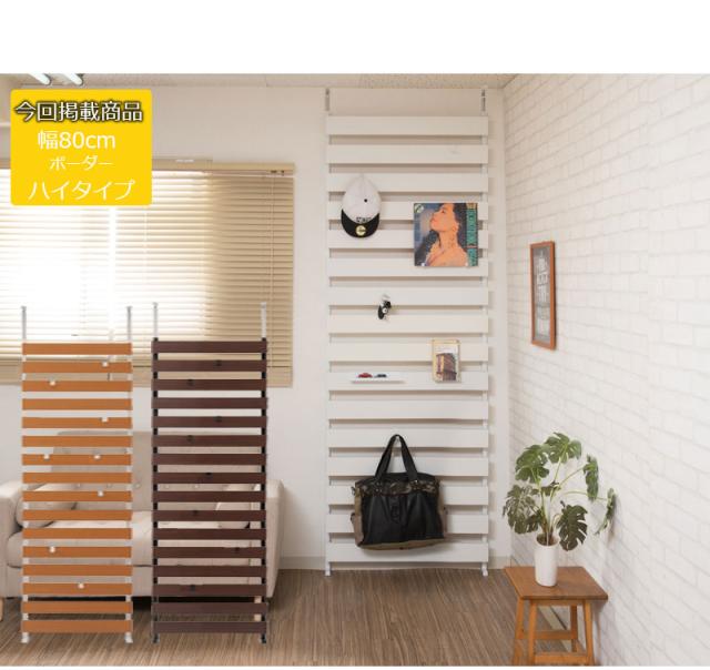 BORDER ボーダー 突っ張り立体ボーダーラック 幅80cm ハイタイプ (突っ張り 壁面収納 仕切り パーテーション ウォールシェルフ 木製)