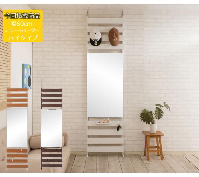 BORDER ボーダー 突っ張り立体ミラーラック 幅60cm ハイタイプ (突っ張り 壁面収納 仕切り パーテーション リビング 鏡 姿見)
