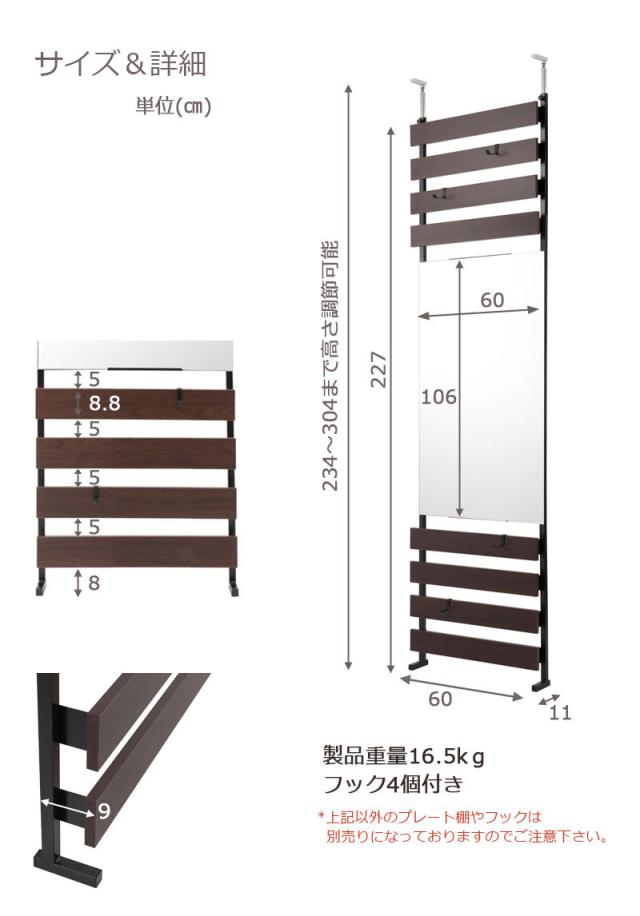サイズ:本体:約幅60×奥行9(脚部11)×高さ234〜304cm/約16.5kg