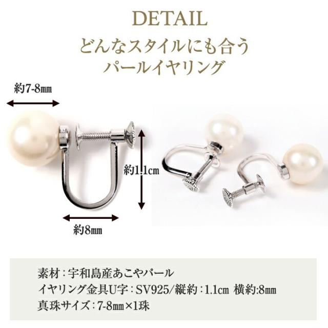 イヤリング パールイヤリング 金属アレルギー対応 真珠 パール 本真珠レディース 本真珠 あこや真珠 冠婚葬祭 フォーマル 金属アレルギー 7mm-8mm SV925 結婚式 ギフト 贈り物 アクセサリー ジュエリー スタッド 直付け 誕生日 クリスマス プレゼント 女性