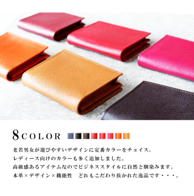 メール便送料無料 名刺入れ カードケース メンズ レディース ユニセックス 本革 天然皮革 2つ折り ビジネス フォーマル ブラック ブラウン ダークブラウン オレンジ ピンク ネイビー ワインレッド レッド 【ギフト】 cd041