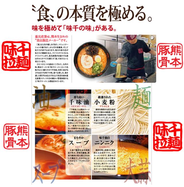 熊本生まれ、熊本育ちの「九州熊本豚骨 味千ラーメン」です。日本全国約90店舗をチェーン展開し世界各国でも活動しています。おいしいだけでなく、体によい味千拉麺を!50年以上受け継がれた秘伝の熊本の味をぜひ味わってください!