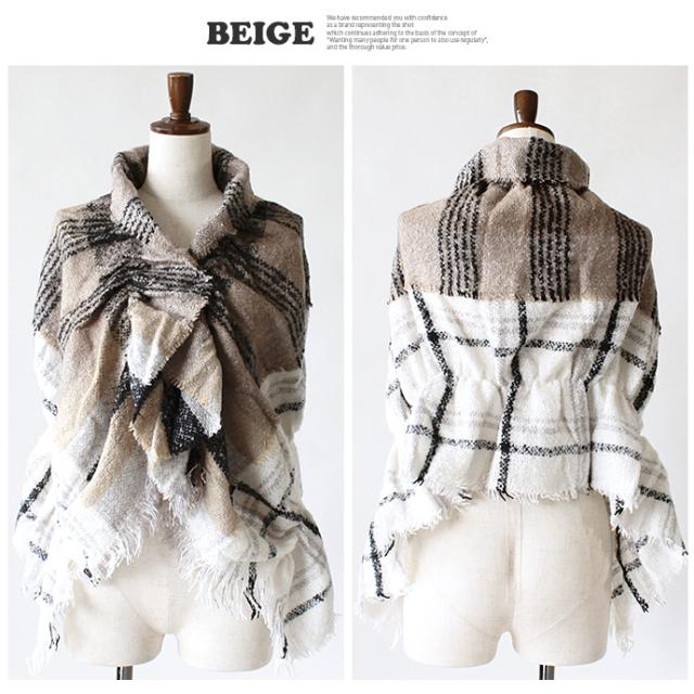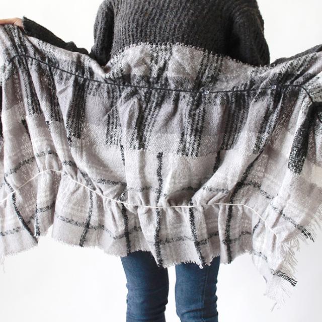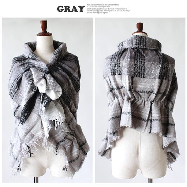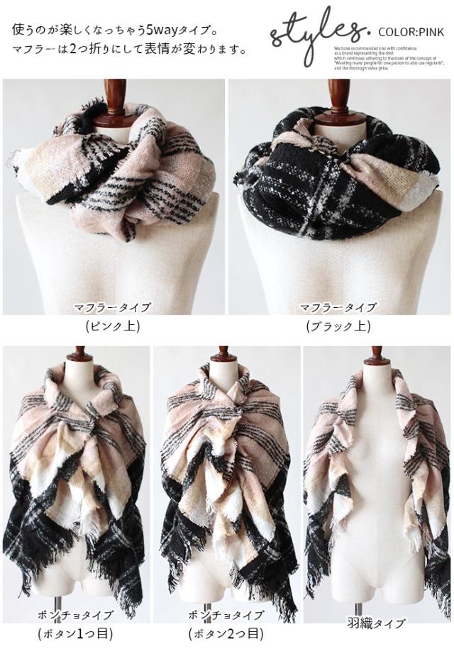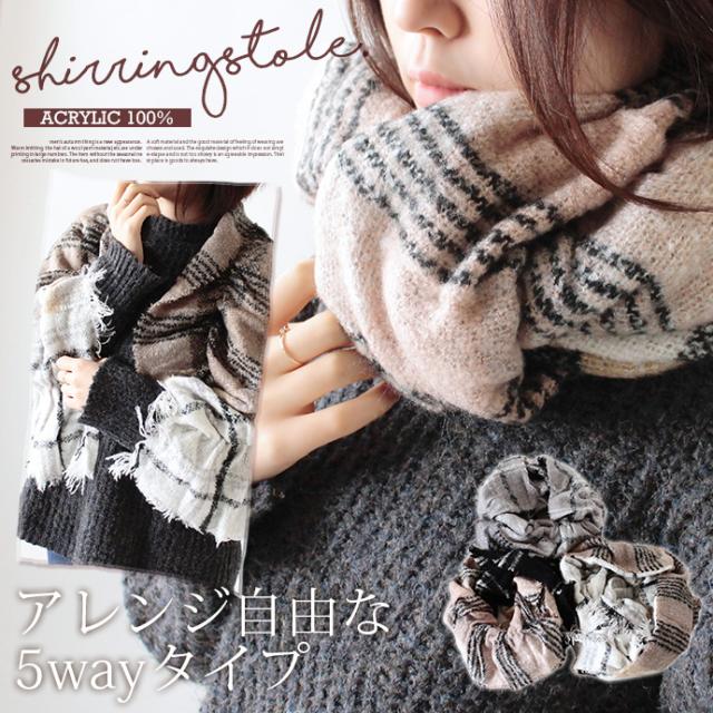 ストール 肩掛け マフラー ポンチョ 羽織 レディース あったか ギャザー チェック 5way ゴム ボタン 前閉じ ボリューミー ボリューム ふわふわ くしゅくしゅ 送料無料