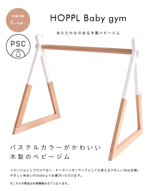 【折りたたみ可能/2way仕様】HOPPL(ホップル) ベビージム 単品 3色対応 対象年齢6ヶ月〜 キッズハンガーラック 赤ちゃん ベビー おしゃれ おもちゃ プレイジム 木製 シンプル メリー ビーチ材