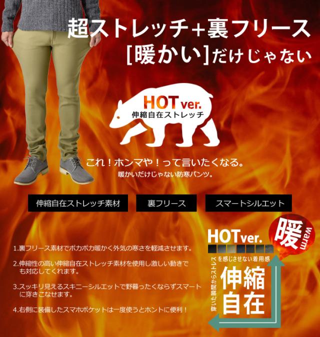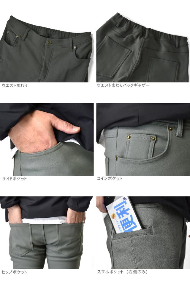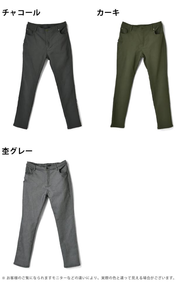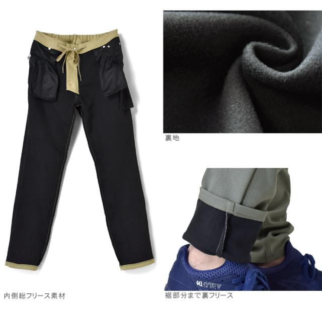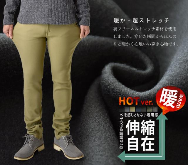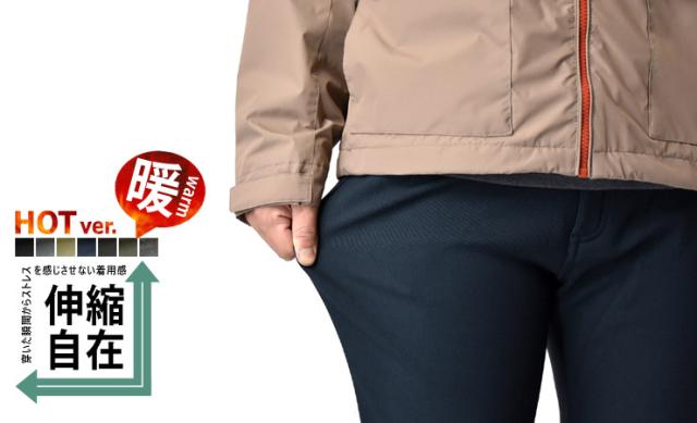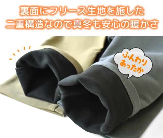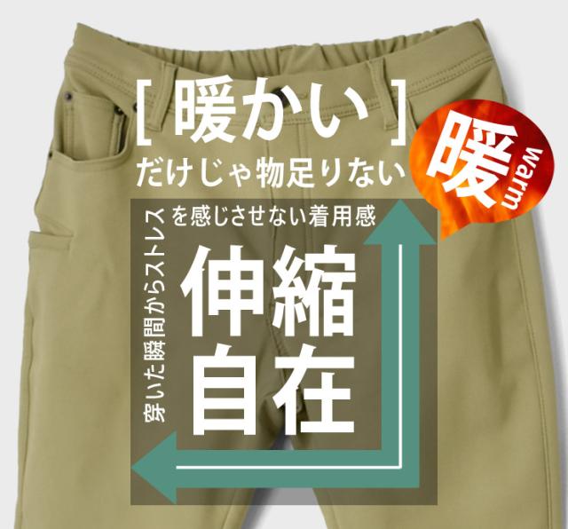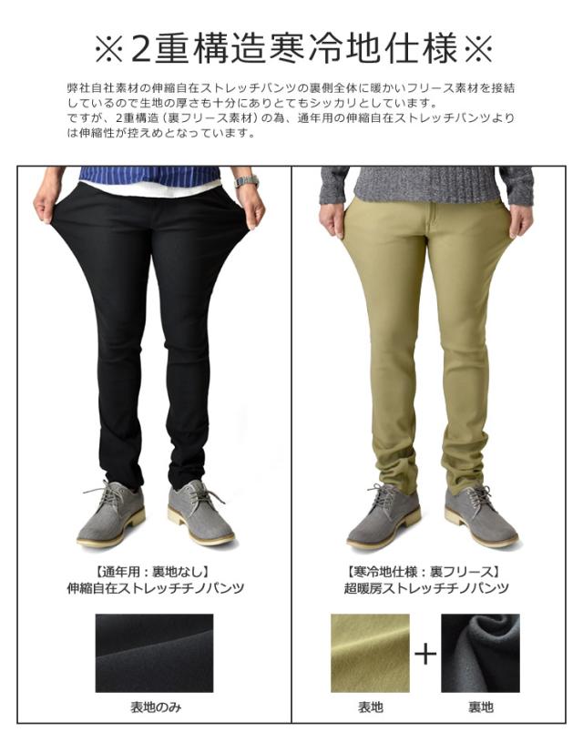裏側にフリースの生地を施した2重構造寒冷地仕様メンズ超暖房ストレッチチノパンツ