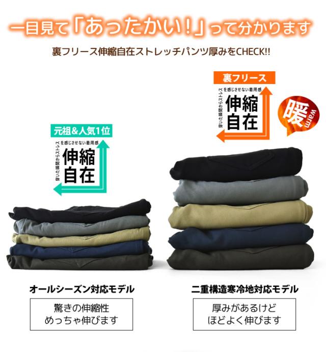 暖 超伸縮 伸縮自在ストレッチ 裏フリース 防寒チノパン【A1W】