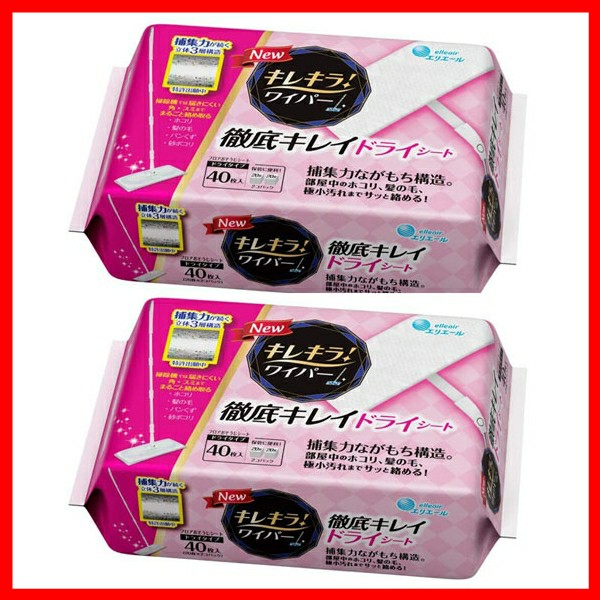 2個セット エリエール キレキラ!ワイパー 徹底キレイドライシート 40枚(20枚×2P) 大王製紙 お掃除用品 拭き掃除 お掃除ワイパー フロアワイパー 乾拭き フローリング 床 畳 elleair