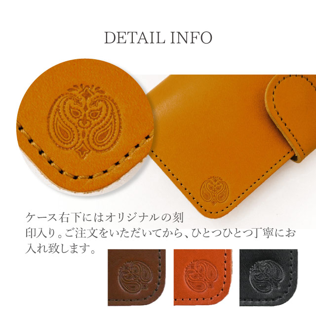 | 注意事項 | ・本商品は受注生産品です。ご注文いただいてから手作業の製造を行っているため、ご注文確定後のキャンセル・変更はお受けできません。 ・手帳部分は天然皮革を使用しているため個体差がございます。 | |