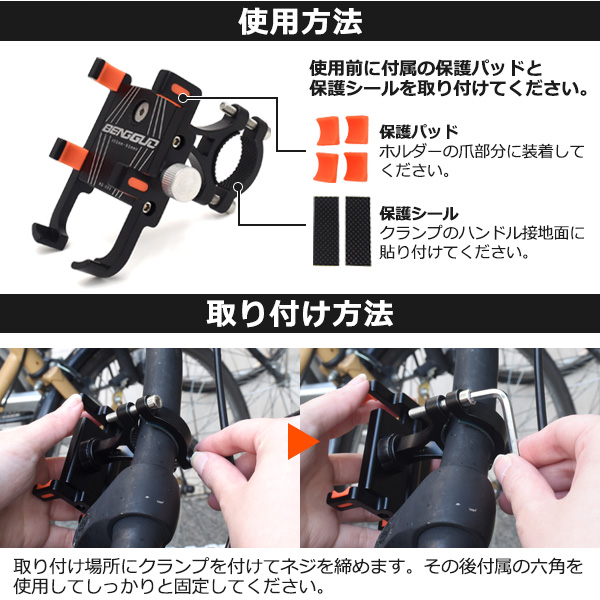 ●工具付属で簡単に取り付けできる、自転車用スマートフォンホルダー