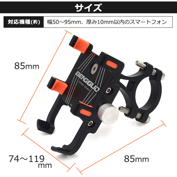 ホルダーは50〜95mmに調整可能なので幅広いスマートフォンを装着することができます。