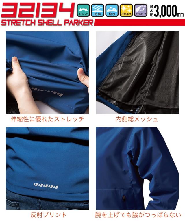 防寒着 ストレッチ シェルパーカー 作業着 防風パーカー 32134 クロダルマ メンズ ブルゾン ジャンパー 秋冬 ストレッチ 反射 撥水 作業着 作業服