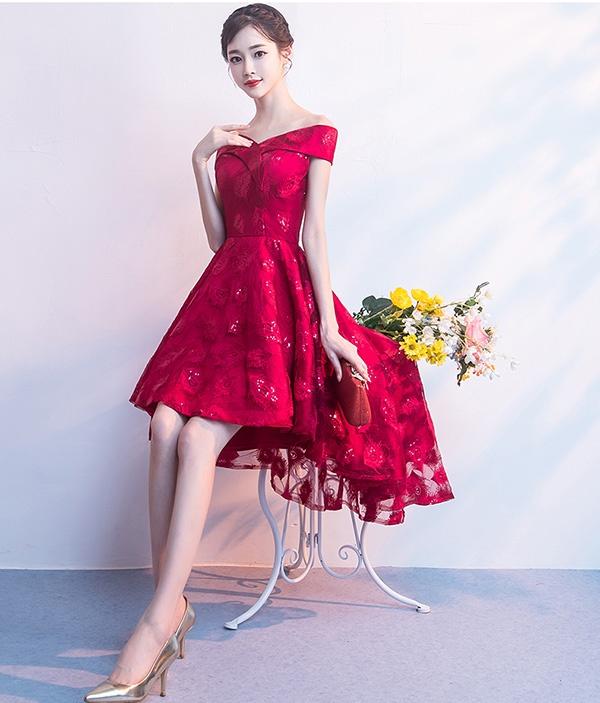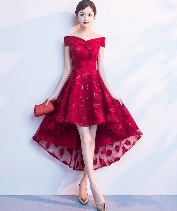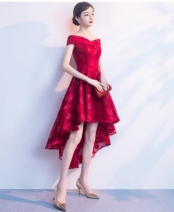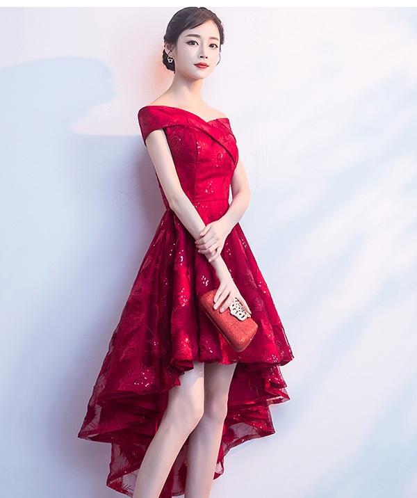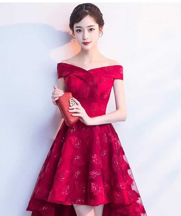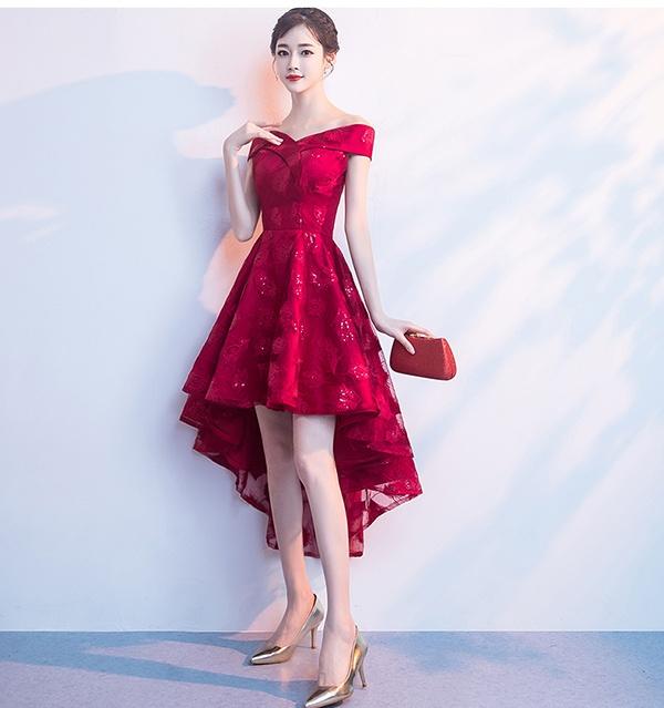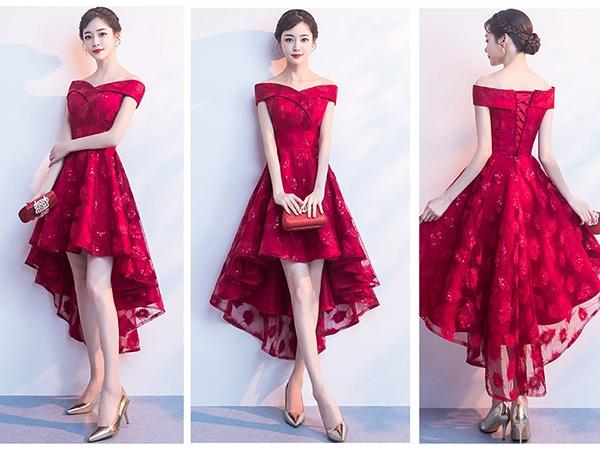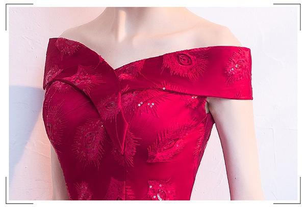 【送料無料】ドレス フィッシュテール パーティードレス オフショルダー 締め上げタイプ ピアノ 発表会 結婚式ワンピース フォーマルドレス エレガント ワインレッド