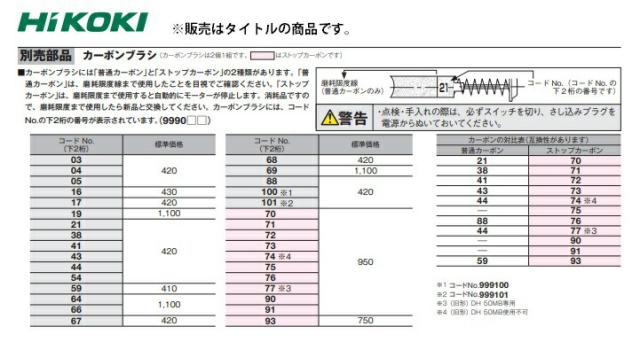 カーボンブラシには、コードNo.の下2桁の番号が表示されています。(9990□□)※No.100/101は下3桁