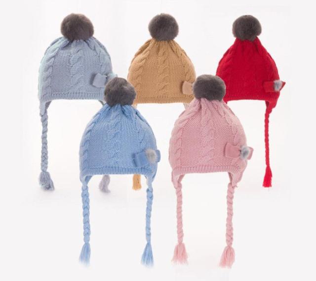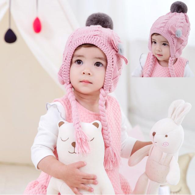 ニット帽 キッズ 子供帽子 女の子 子供 防寒 ジュニア 帽子 冬 こども ニット帽子 ボンボン付き かわいい ニット帽子 子ども 裏地コットン 綿