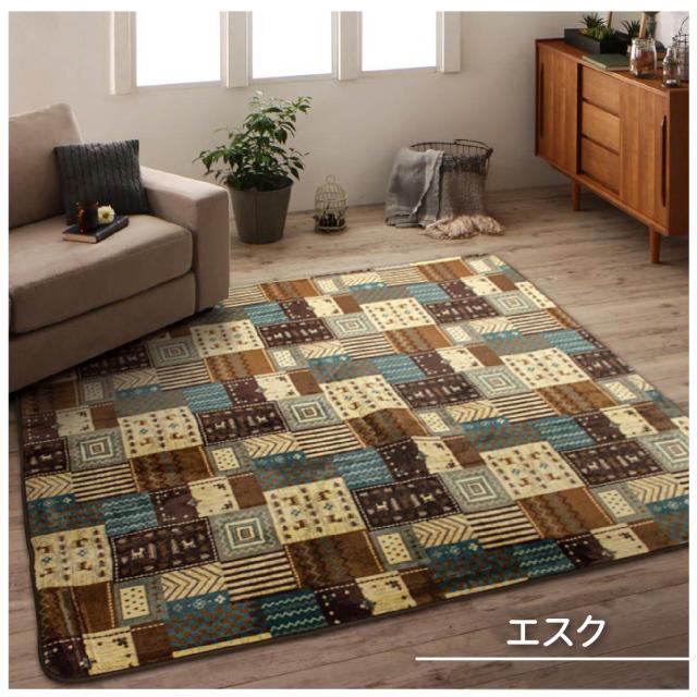 ラグ カーペット 230×230cm 4.5畳 正方形 フランネル ウレタン 暖かい 秋 冬 洗える 清潔 大判 ボリュームラグ エスニック