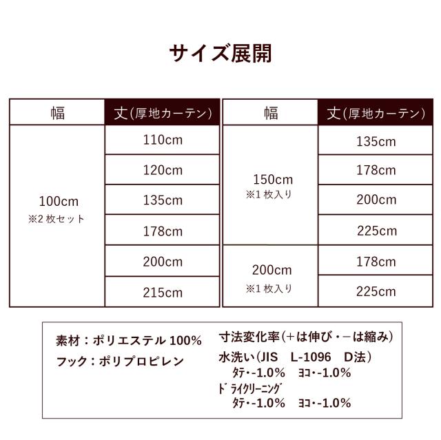 ・厚地カーテン2枚(150cmと200cm幅商品は1枚入り)