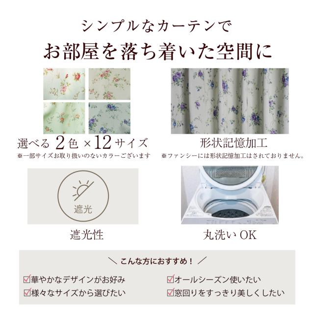カーテン ドレープ 厚地 遮光 形状記憶 洗える 清潔 ウォッシャブル オシャレ 可愛い 2枚セット 1枚入り サイズ豊富 仕切り 間仕切り 選べる4種類12サイズ