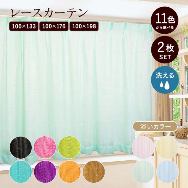 レースカーテン レース カーテン カラフル 2枚セット 洗える 清潔 おしゃれ セルバ