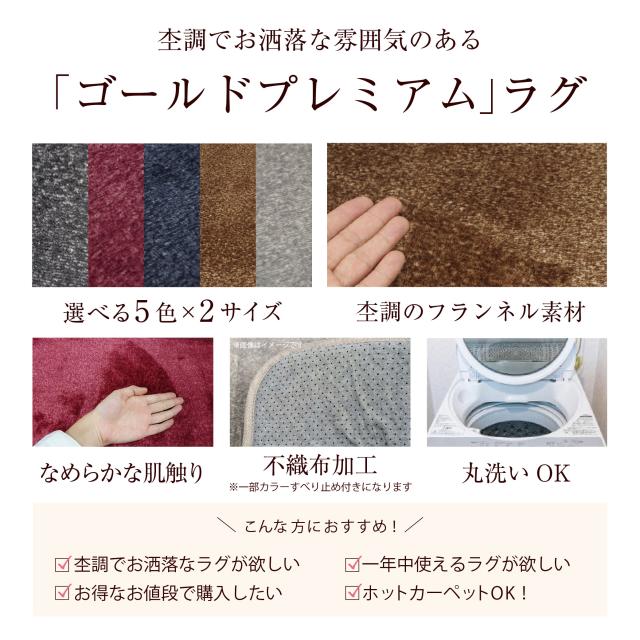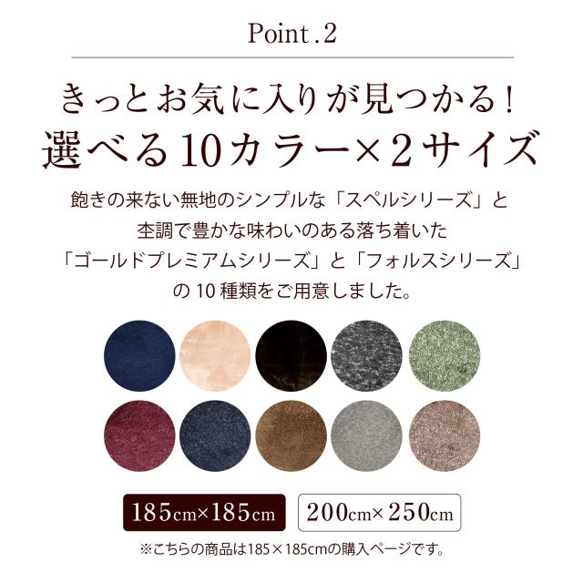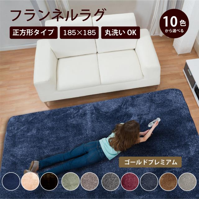 ラグ カーペット 185×185 2畳 正方形 フランネル ホットカーペット対応 秋 冬 暖かい 無地 スペル ゴールドプレミアム フォルス