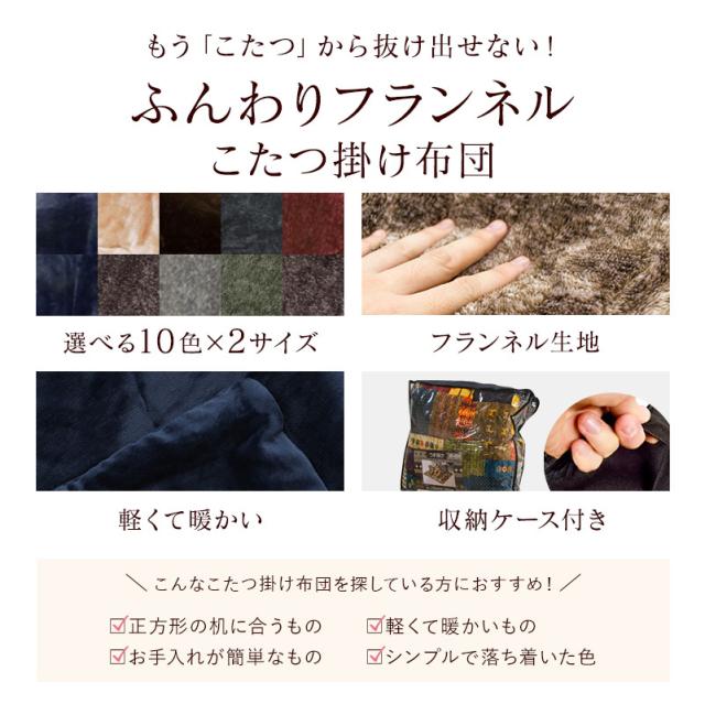 【在庫処分 なくなり次第終了】こたつ掛け布団 こたつ布団 190×190 正方形 フランネル 冬 暖かい シンプル 選べる10色 無地こたつ掛け