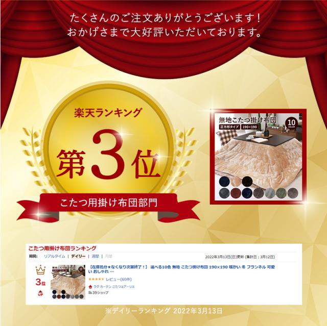 選べる10色 無地こたつ掛け 190×190