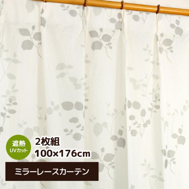 レースカーテン 100×176 ミラーレース UVカット 断熱 洗える トリコットリーフ